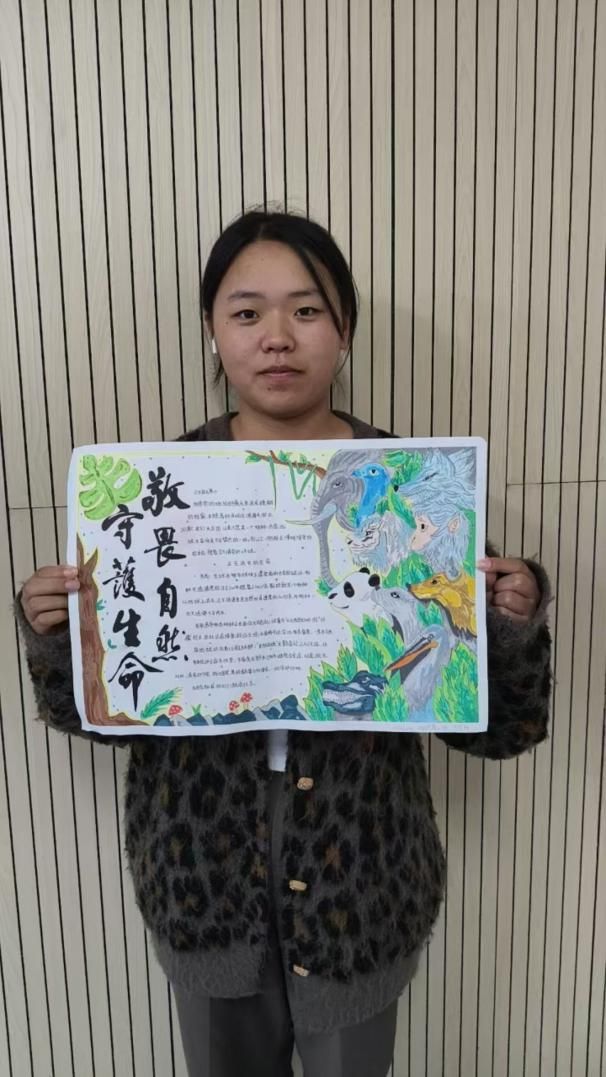 手抄报赛道同样精彩纷呈。学生们充分发挥创意,将科学知识与艺术审美相结合:有的以 “蓝天精灵图鉴” 为主题,用细腻的线条绘制雄鹰、雨燕、白鹭等鸟类形态,并标注其生活习性与保护级别;有的通过对比漫画展现 “破坏栖息地” 与 “守护家园” 的不同场景,以强烈的视觉冲击传递环保警示;还有的融入电信专业元素,在作品中绘制 “物联网监测鸟类迁徙” 的示意图,展现科技赋能野生动物保护的创新思路。一幅幅色彩鲜明、内容丰富的手抄报,不仅是艺术创作,更成为传播野生动物保护知识的生动载体。