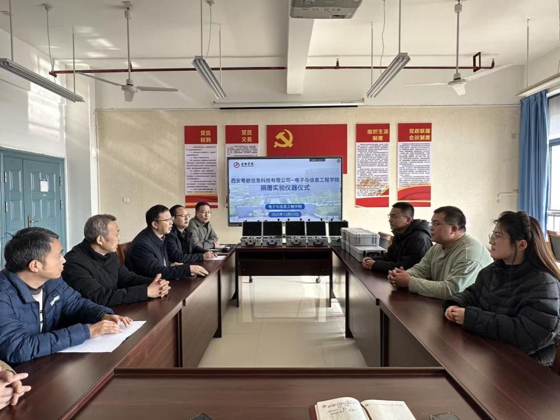 2025年12月17日,西安粤嵌信息科技有限公司向我校电子信息与工程学院捐赠一批教学科研用机器人仪式在科技楼举行。校企双方相关负责人、学院师生代表共同出席了捐赠活动。
