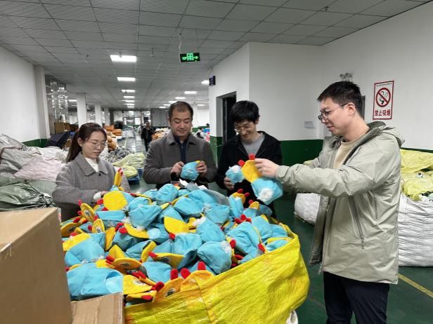 座谈会后,学院相关负责人陪同企业一行实地走访了安康安贝斯玩具、陕西康之宁玩具、安康安瑞智能制造有限公司、安康中国西北纺织服装产业城等多家毛绒玩具与纺织行业的重点企业,并拜访了汉滨区智能织袜机产业链专家工作站技术团队。调研团队深入生产车间、研发中心,了解毛绒玩具和服装全流程生产工艺、企业规模及发展布局。调研过程中,校企双方结合电子控制、人工智能等专业优势,就企业智能化改造、产品质量检测等技术问题与企业深入探讨,为企业提供优化建议。