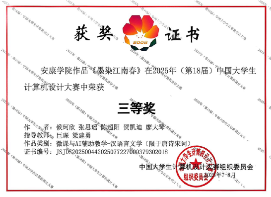 中国大学生计算机设计大赛自2008年创办以来已连续举办十八届,凭借高规格与专业性成为检验高校教学成果、锤炼学生实践能力的重要平台。此次我院的参赛成果,不仅是对学子专业能力的肯定,更彰显了学院深化实践教学改革、着力培养学生创新与实践能力的成效。