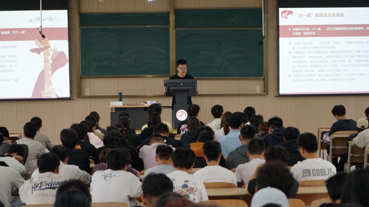 为引导新生树立正确的中华民族历史观,铸牢中华民族共同体意识,2025年10月11日下午,辅导员贾金兵在江北校区1404教室讲授主题为“中华民族共同体意识的形成与铸牢”的入学教育。bwin官网2025级全体新生参加此次学习。