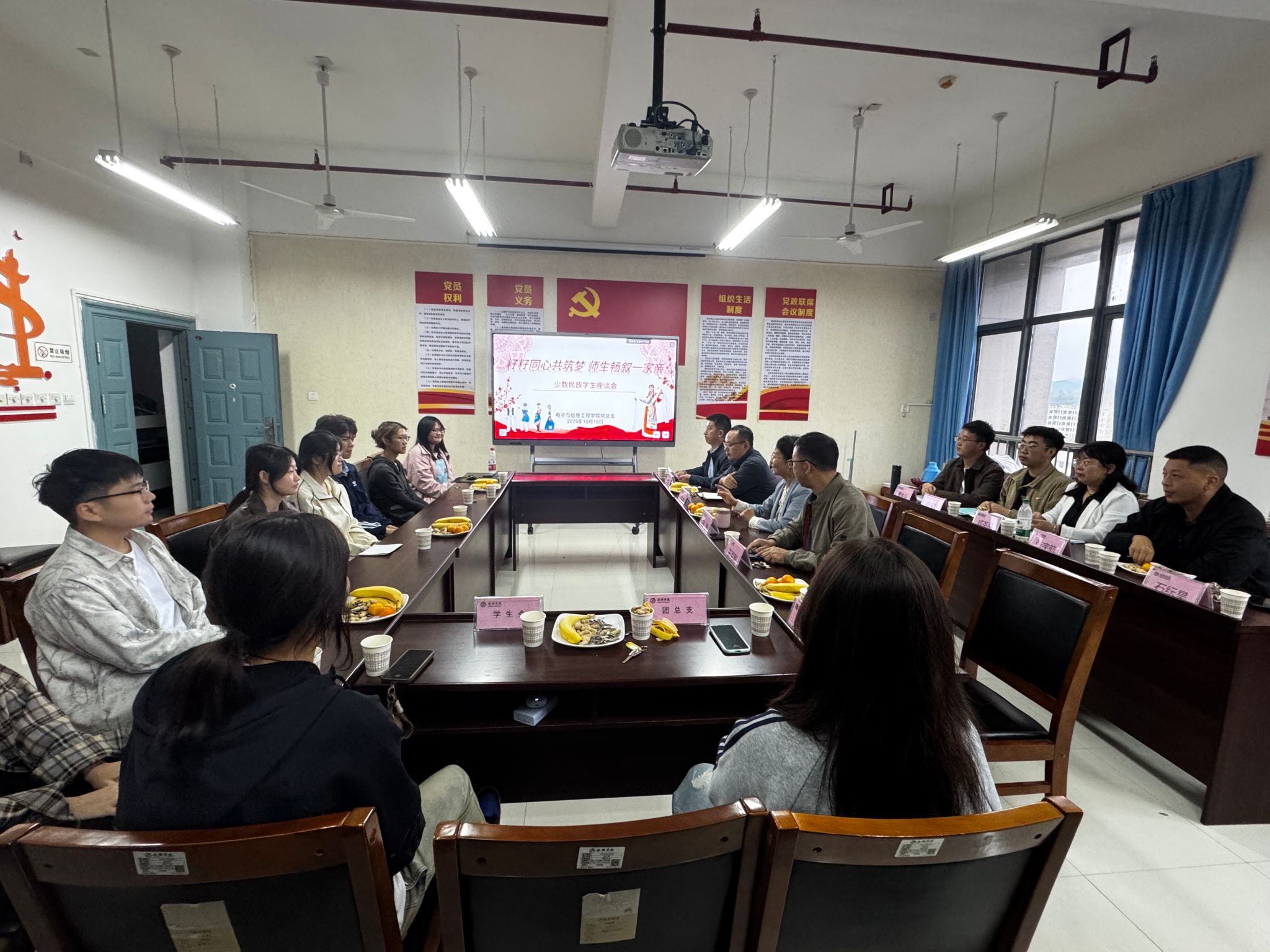 为深入贯彻落实中央民族工作会议精神,推动铸牢中华民族共同体意识教育走深走实,10月16日下午,bwin官网党总支在江北校区逸夫科技楼B702会议室组织召开了“籽籽同心共筑梦 师生畅叙一家亲”主题座谈会。学院领导班子、辅导员、少数民族学生及学生干部代表共聚一堂,畅谈民族团结,共话成长发展。会议由党总支副书记蔡正往主持。