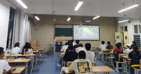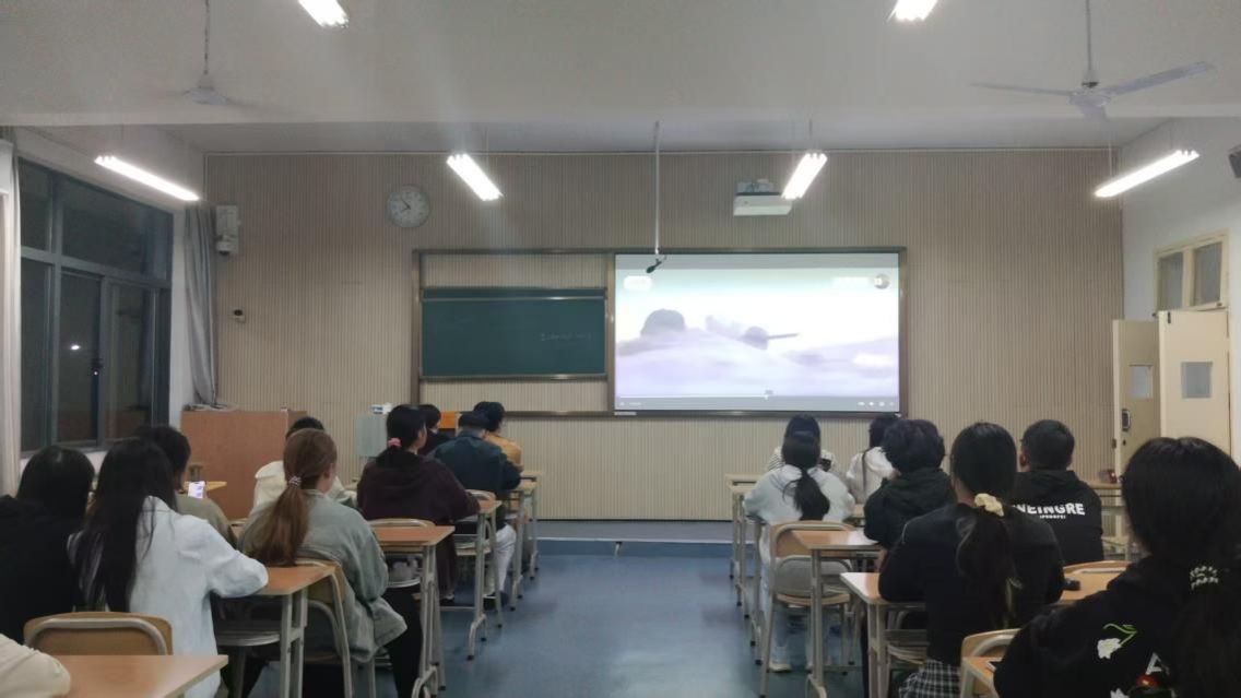 活动当天,同学们有序落座于多媒体教室。当影片画面在屏幕上缓缓铺展,那段波澜壮阔的历史场景瞬间映入眼帘。本次活动精心筛选多部不同时期的爱国主义影片,从新民主主义革命时期的艰辛探索与热血抗争,到新时代中国在科技、外交、民生等领域的大国担当,多维度诠释了中国人民在不同历史阶段的爱国热忱与奋斗精神。