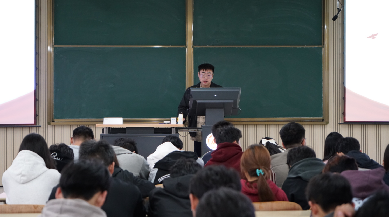 为引导电信学子筑牢信仰之基、补足精神之钙, 2025年11月5日,bwin官网学生第一党支部书记翟子轩在江北校区1204教室讲授主题为《“五史”照亮前行路,青春献礼新中国》的入学教育暨专题党课,bwin官网2025级全体新生、学生党员参加。