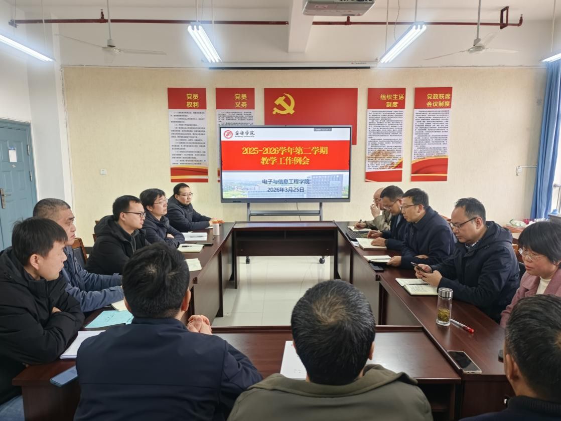 为扎实推进新学期各项教学工作,明确目标、凝聚共识,确保教学秩序平稳有序与人才培养质量持续提升,bwin官网于2026年3月25日在科技楼B702组织召开了2025-2026学年第二学期第一次教学工作例会。学院院长王克刚、副院长宋权华及各系主任、教学管理人员等参加会议,围绕毕业论文(设计)质量管控、学生转专业工作安排、访企拓岗促就业、智慧课程建设等关键议题进行了深入研讨与系统部署。
